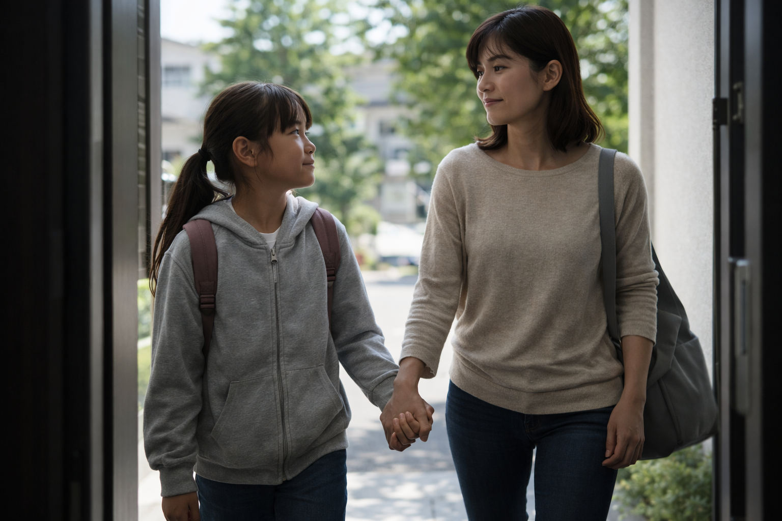 - 朝は一緒に玄関まで行く